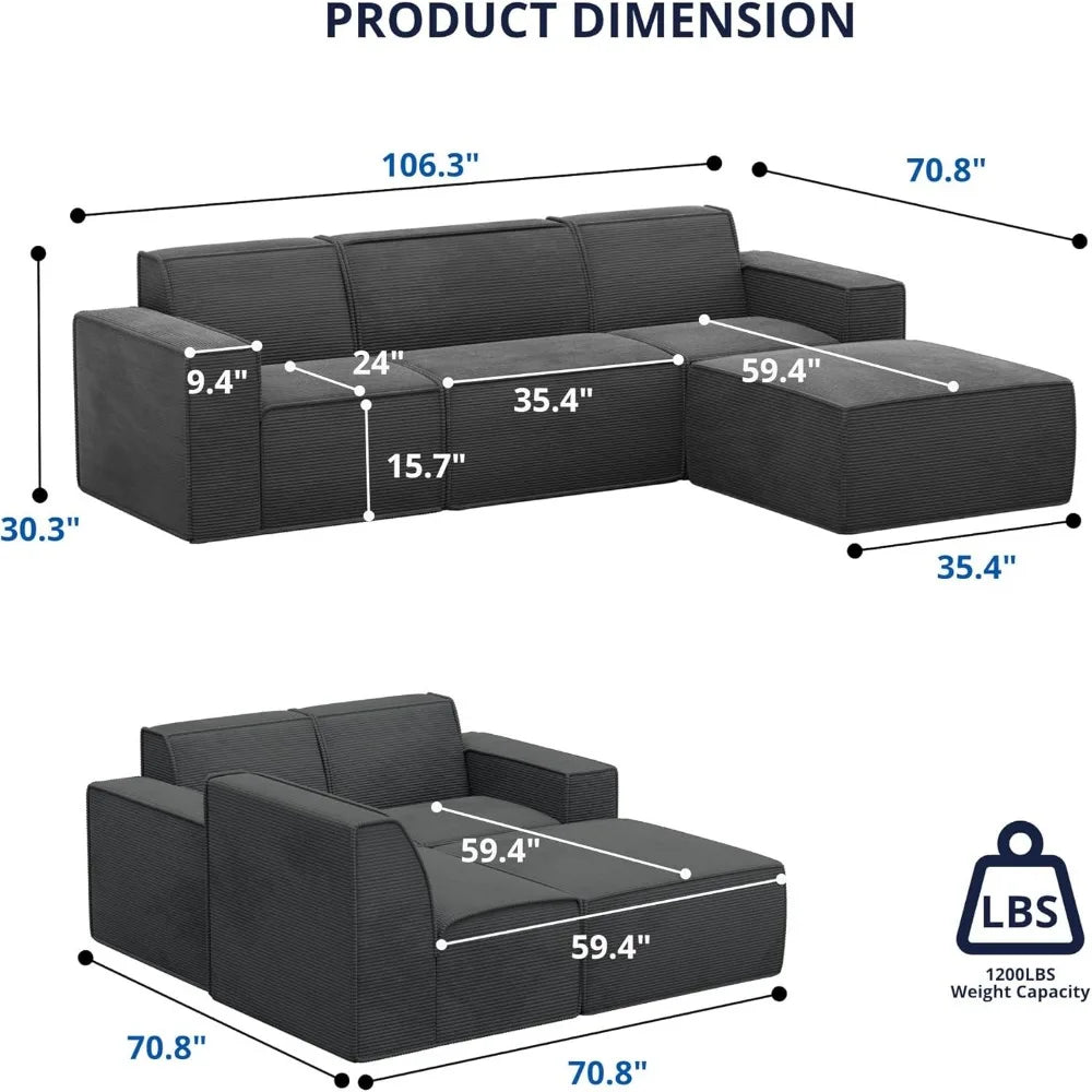 Transform your living space with the contemporary 106" Modular Sectional Sofa by DAFIFY, designed for comfort and style.