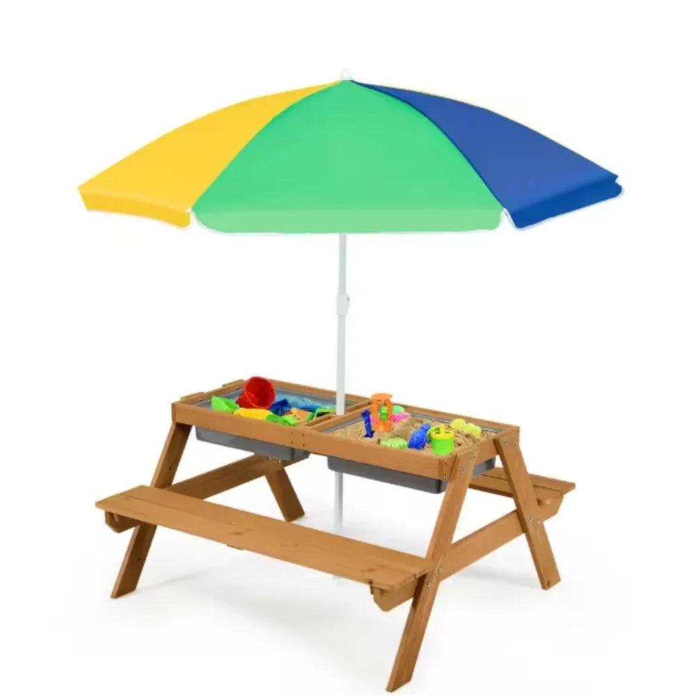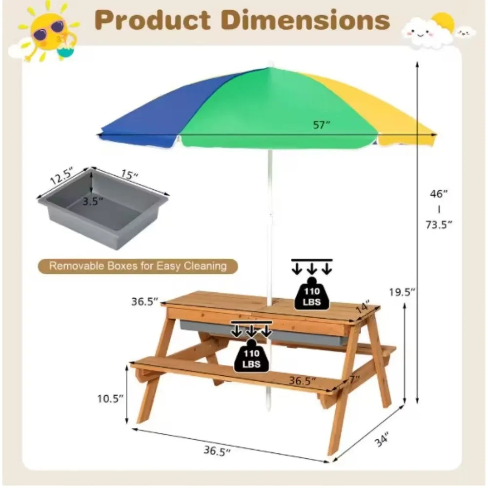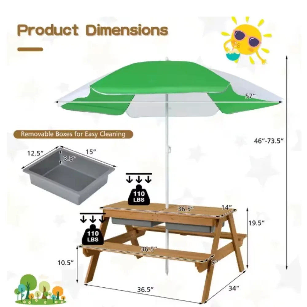 - Ultimate Versatility: This picnic table features an umbrella and built-in play boxes, making it ideal for picnics, playtime, and snack breaks.