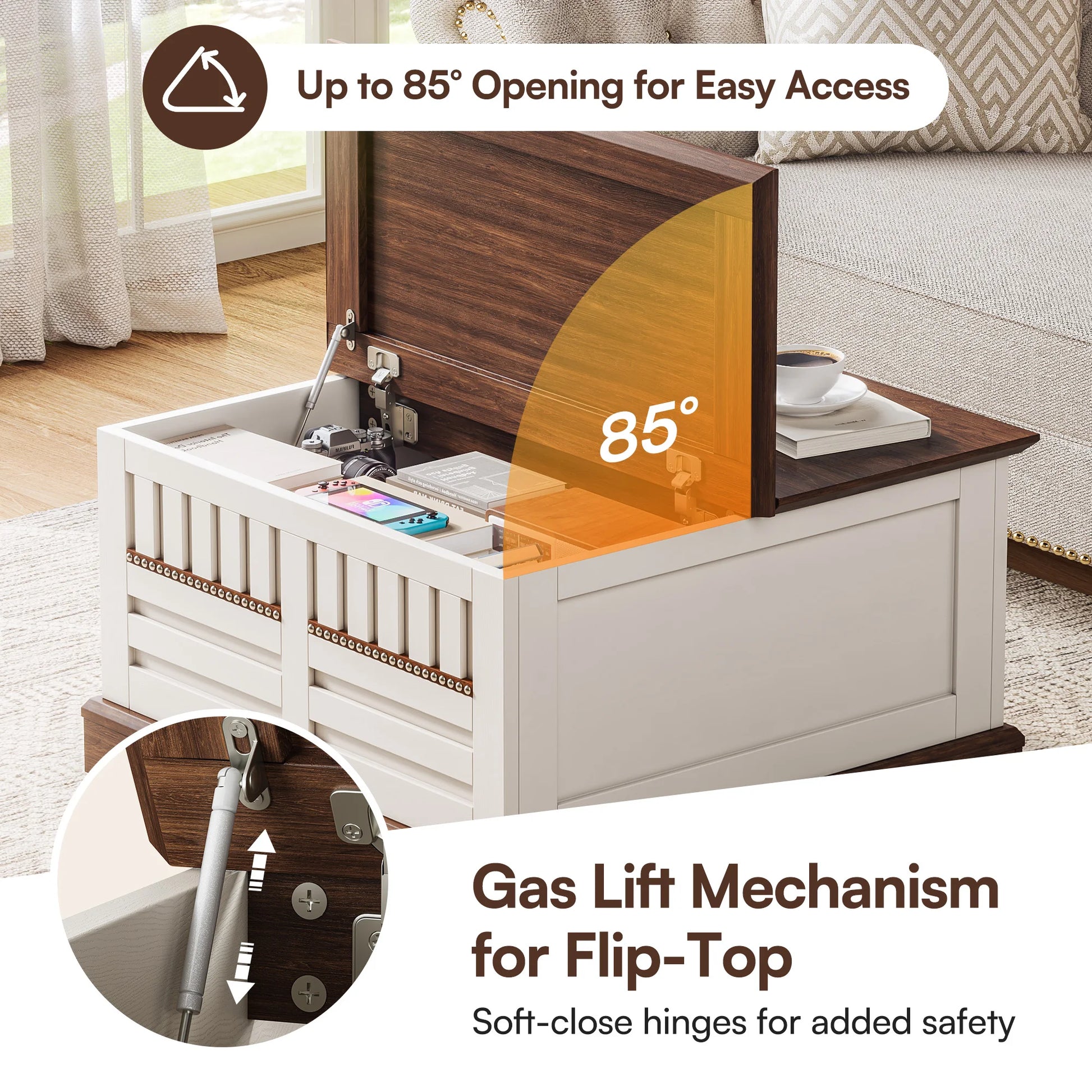 Farmhouse Lift Top Coffee Table With Hidden Storage