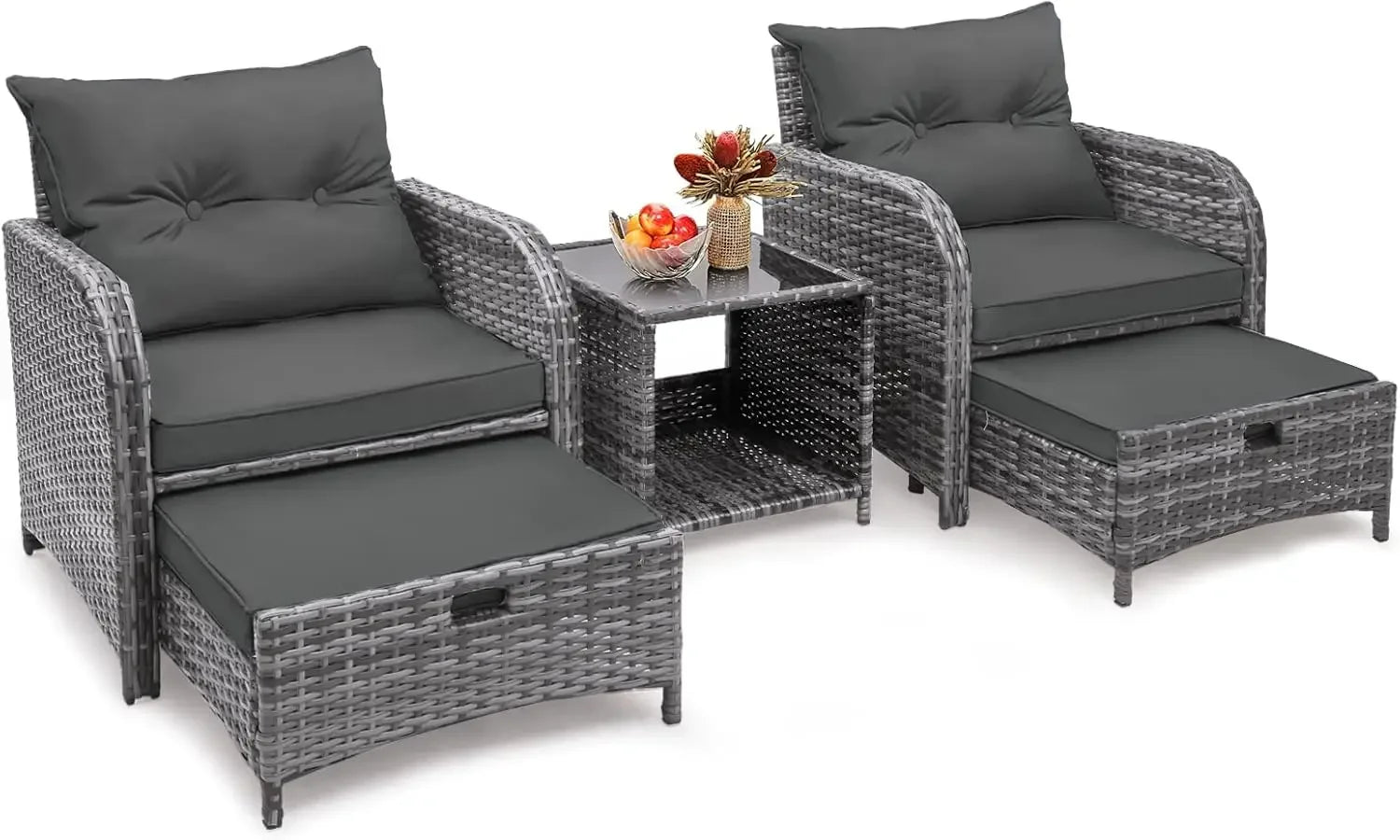 5 Piece Rattan Patio Chairs Set With Ottoman Comfort