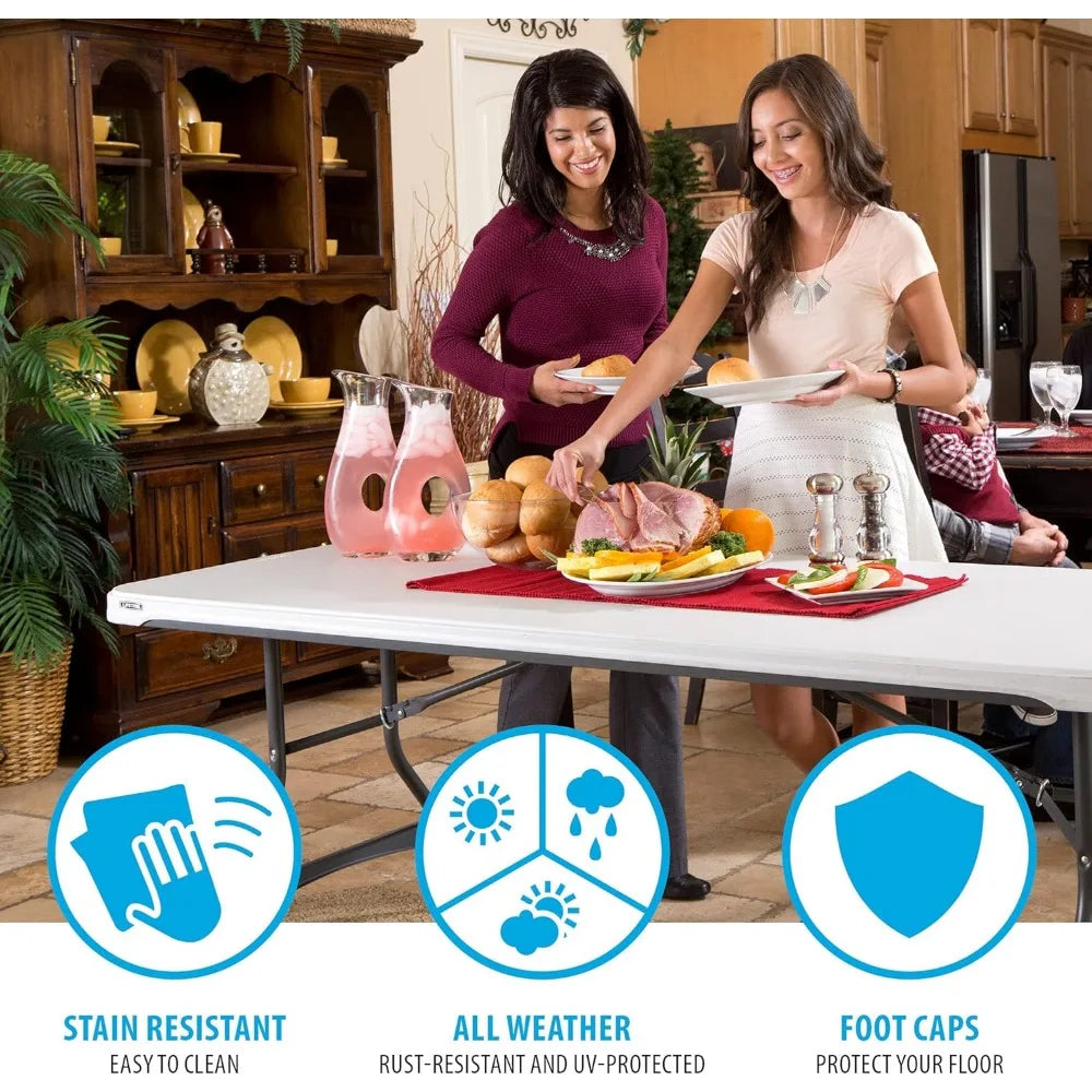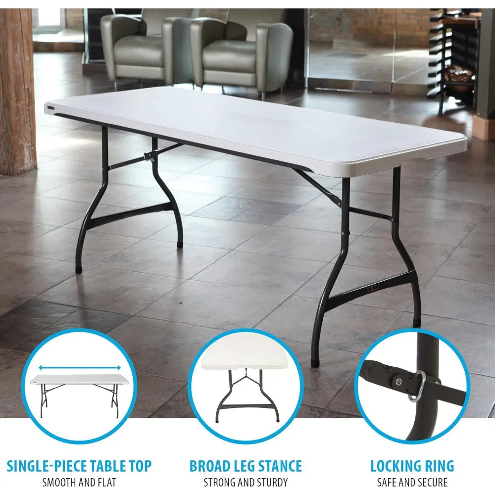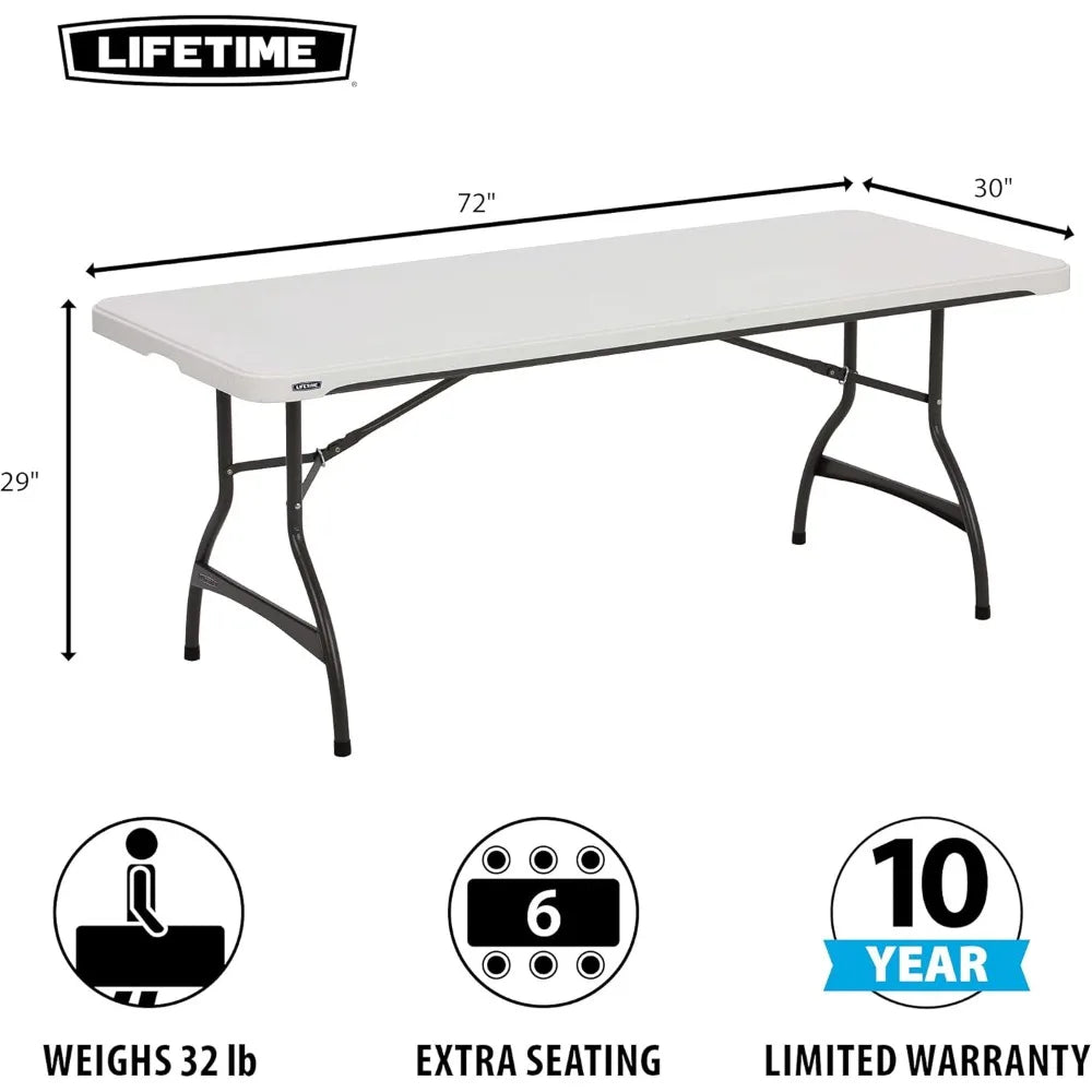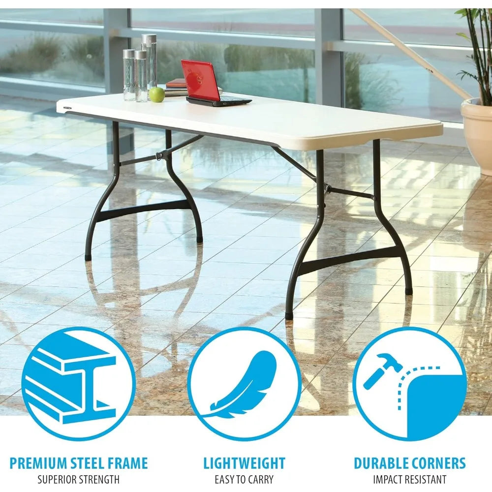 - Six‑foot white top provides ample workspace (30" D x 72" W x 29" H) and a clean, professional look for any event, from corporate seminars to casual banquets.