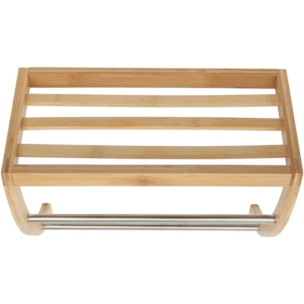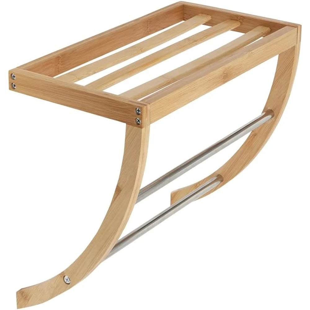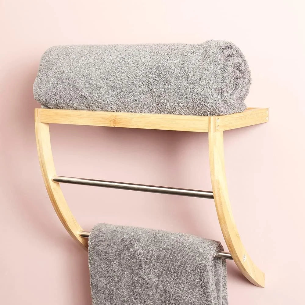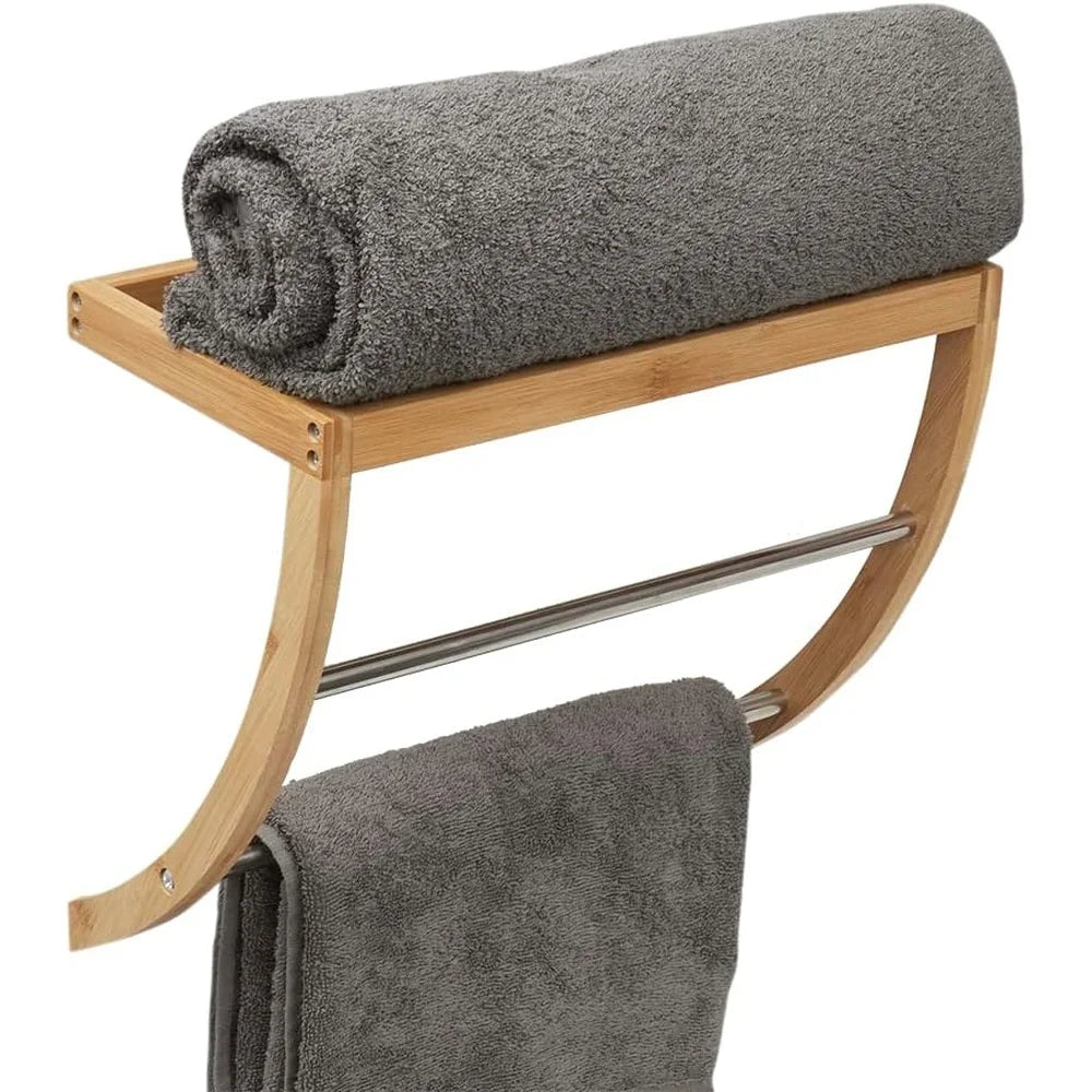 Durable Bamboo Wall Mounted Shelf with 2-Tier Towel Rack