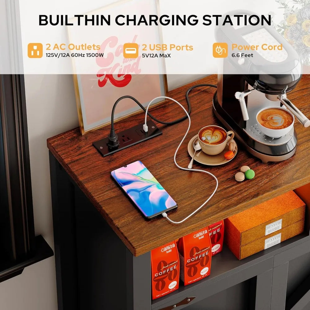 Buffet Sideboard With Power Outlets And Led Light 55 Inch