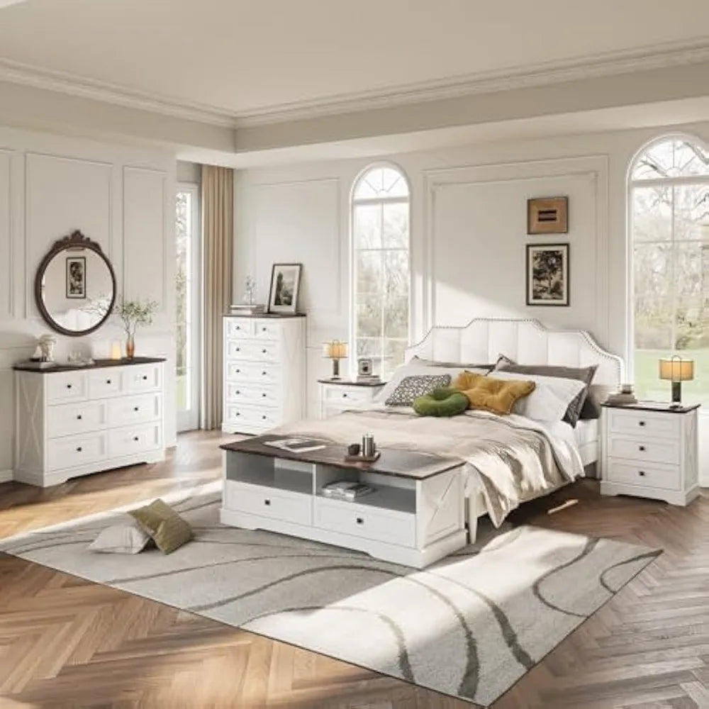 - White farmhouse finish paired with clean, timeless lines complements a wide range of bedroom décors, from rustic to contemporary.