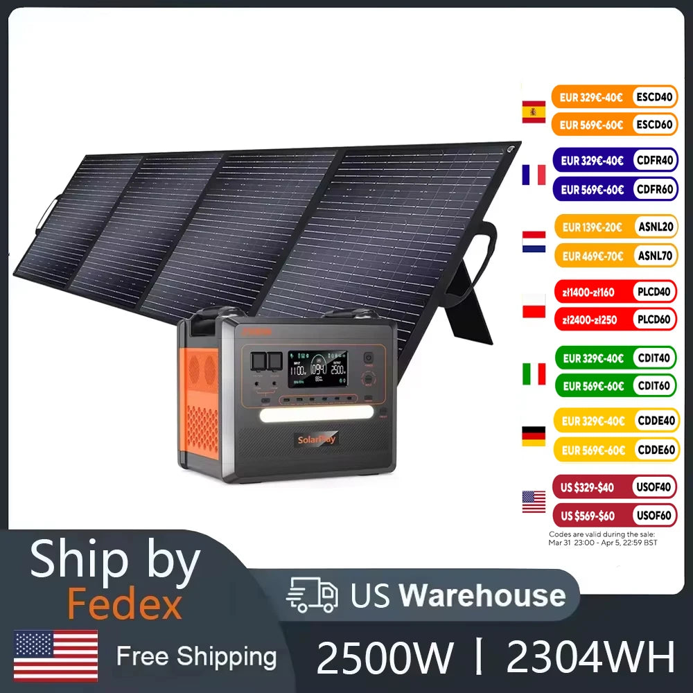 Unleash your outdoor adventures with the SOLARPLAY 2304WH Portable Power Station, the ultimate high-capacity UPS for camping and solar use!