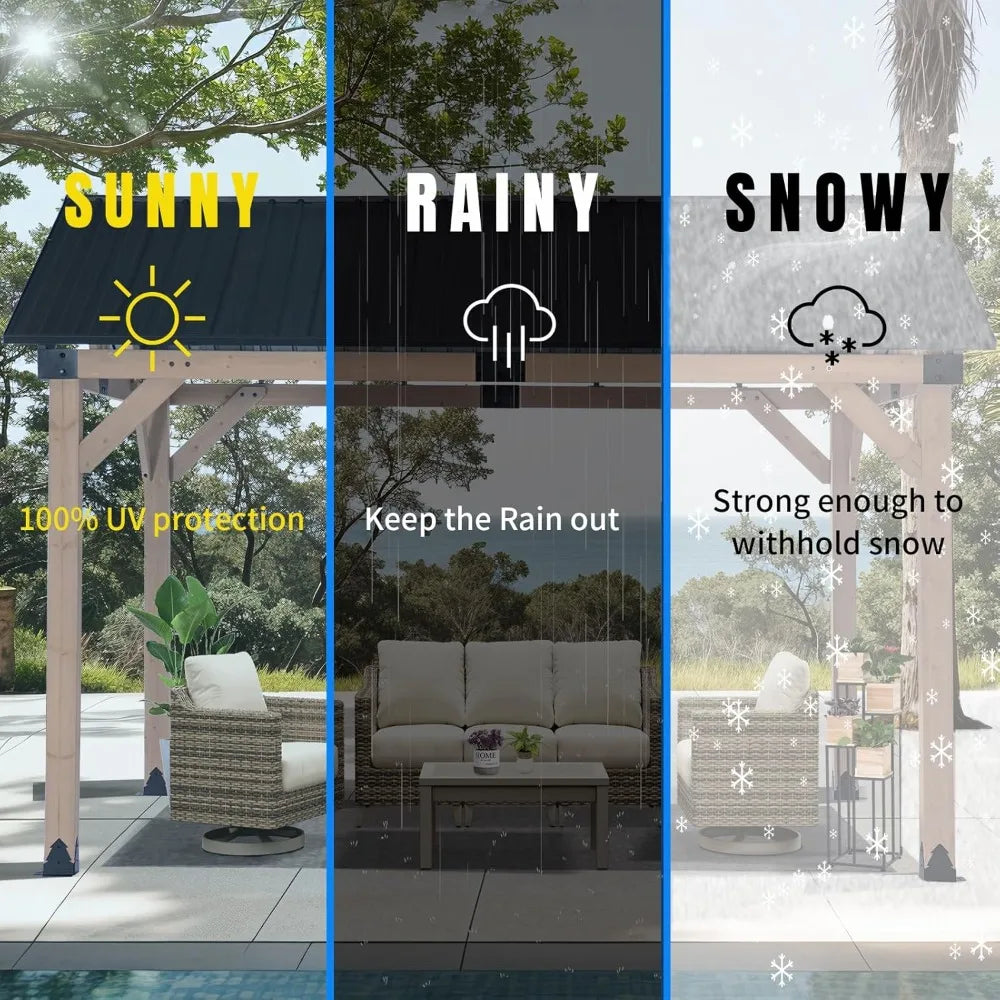 Elevate your outdoor space with the Natural Cedar Frame Hardtop Gazebo with Steel Roof—this durable, weather-ready sanctuary blends cedar warmth with rugged steel protection for you to enjoy year-round gatherings.
