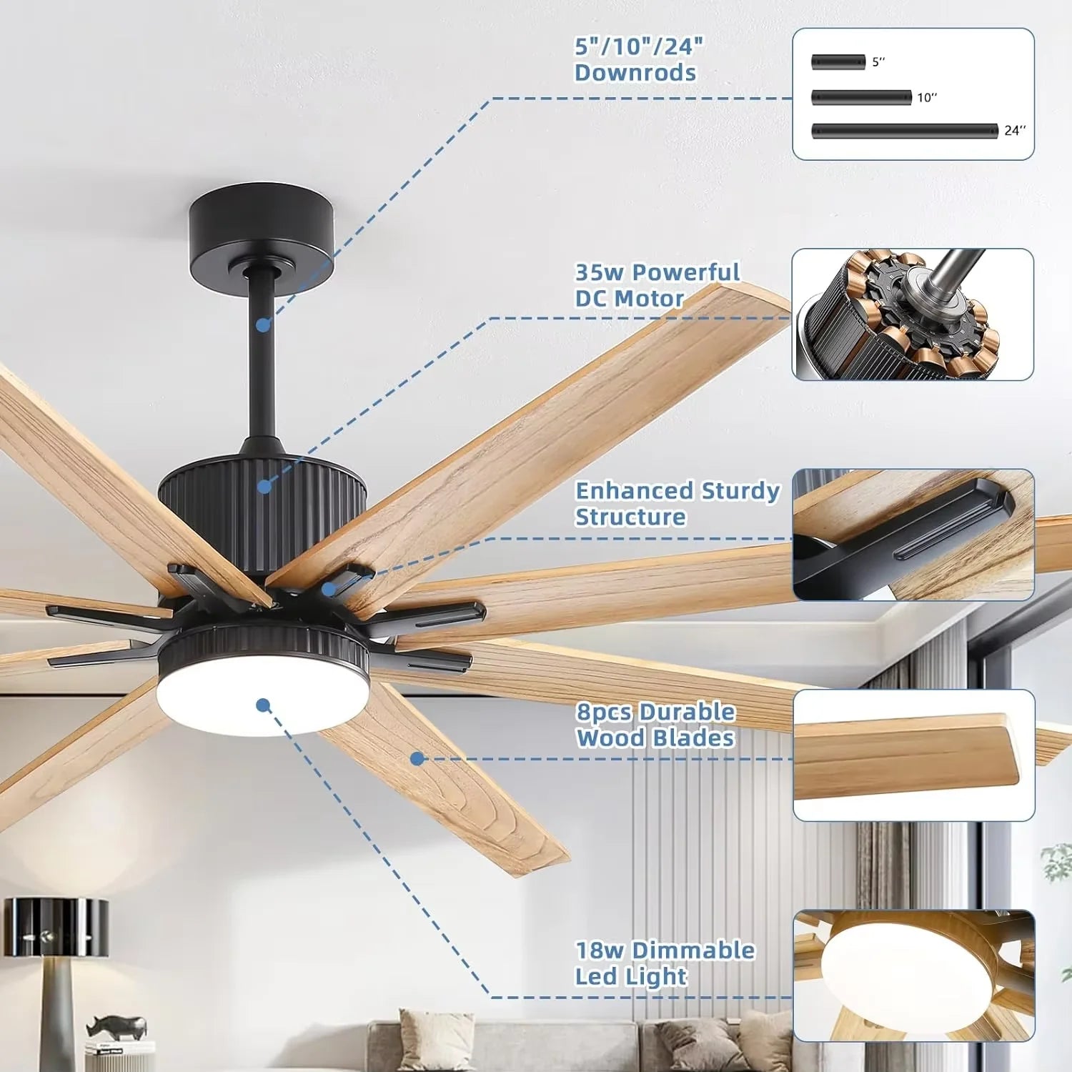 Elevate your space with the Sofucor Modern 76 Inch Ceiling Fan, designed for both style and functionality. Experience the perfect blend of aesthetics and convenience in your home.