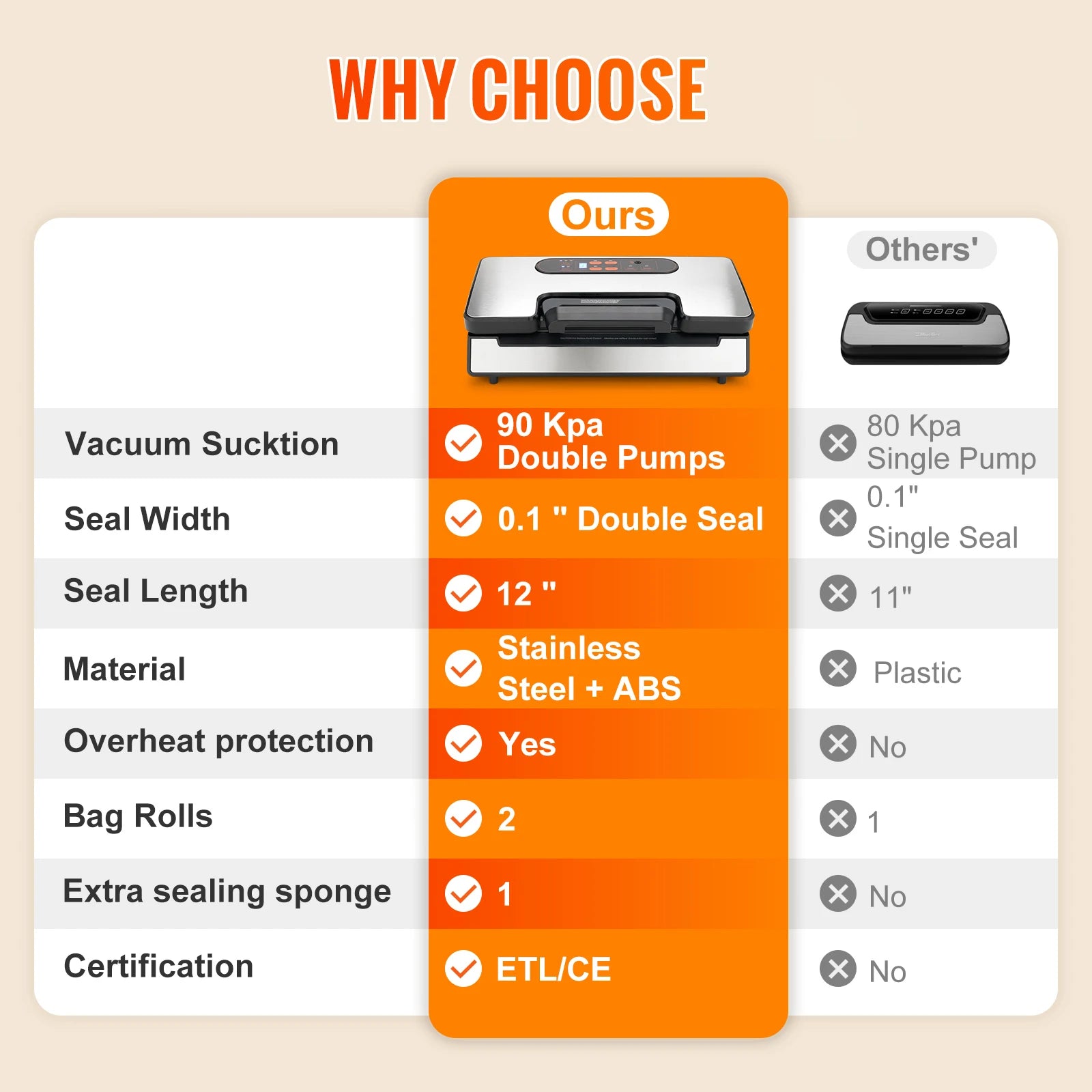 - Dual 90 kPa suction powers you to get airtight seals with two pumps, locking in flavor and keeping food fresher longer.