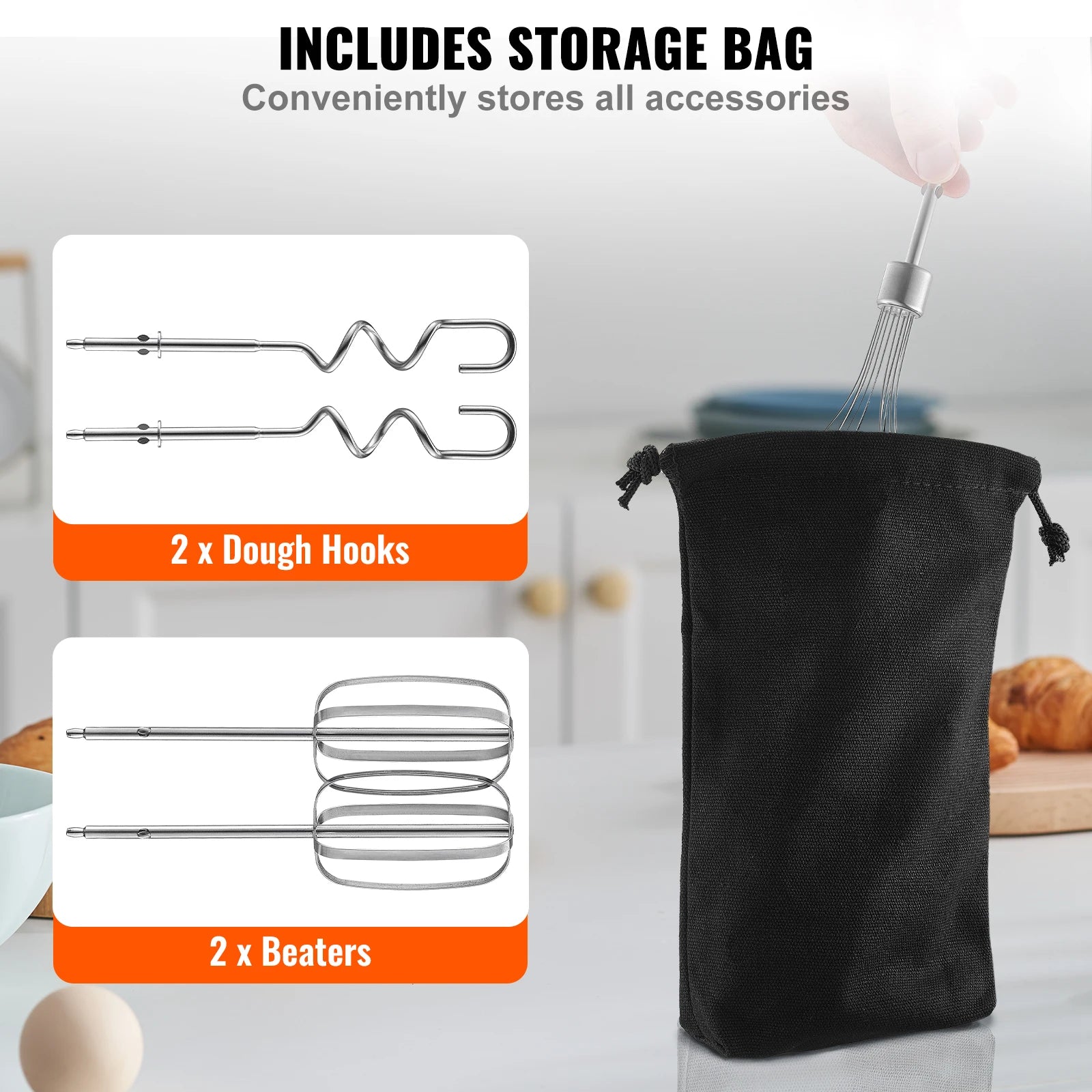 - Includes a storage bag and high-grade SUS304 beaters set in a durable ABS housing for easy organization and lasting performance.